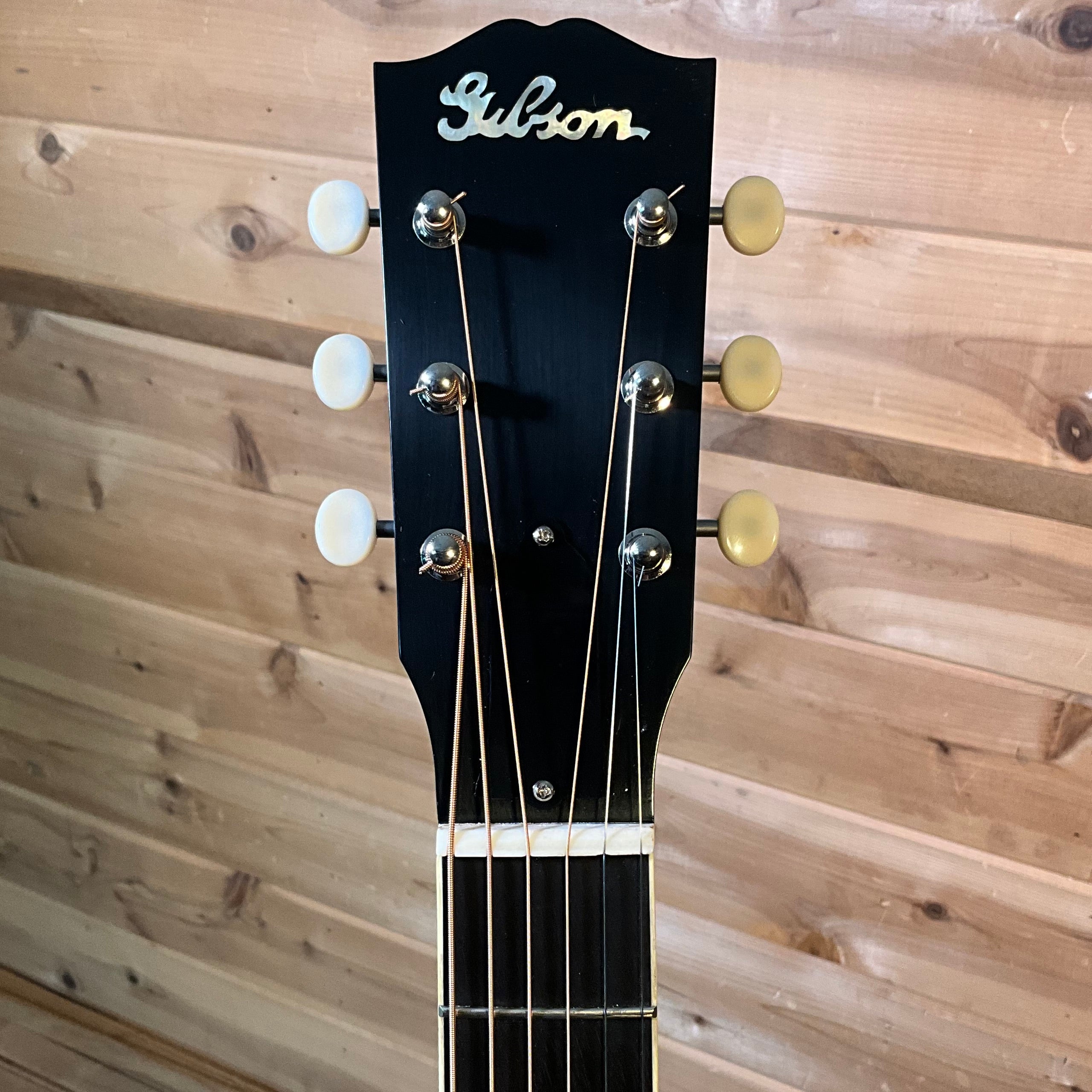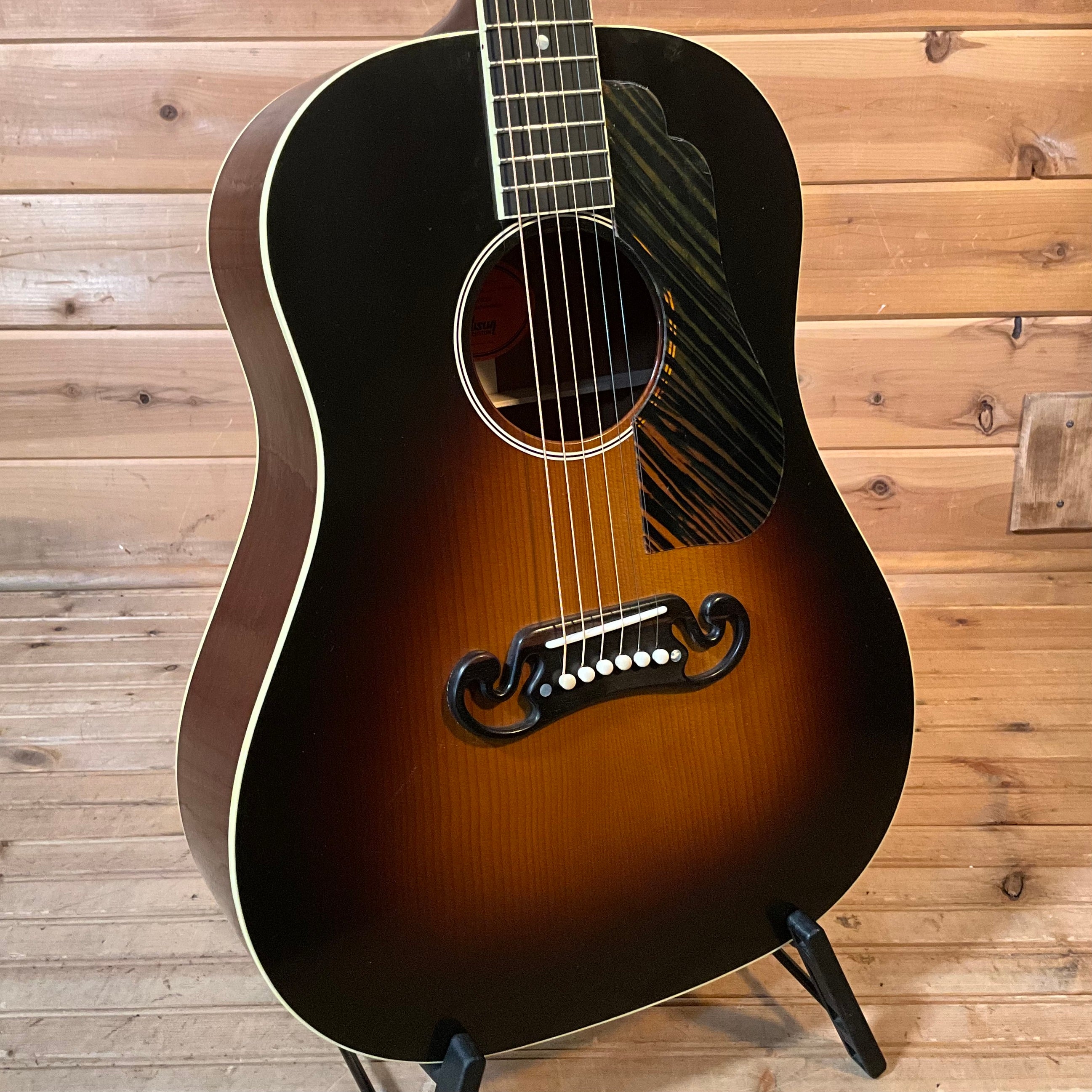The guitar that started the legacy of Gibson Jumbo acoustics. When Gibson released the Jumbo in 1934, it was larger than any other guitar Gibson offered, and it made for a remarkable instrument. Only built for two production years, these rare instruments quickly became artist favorites and best represent the Gibson sound heard by world-renowned artists and collectors. Thoughtfully recreated with a Thermally Aged Adirondack red spruce top, hot hide glue top bracing, mahogany back and sides, traditional 25'' scale length, and a historic-style V neck profile, the Gibson Acoustic Custom Shop is proud to bring back a legend, the 1934 Jumbo.