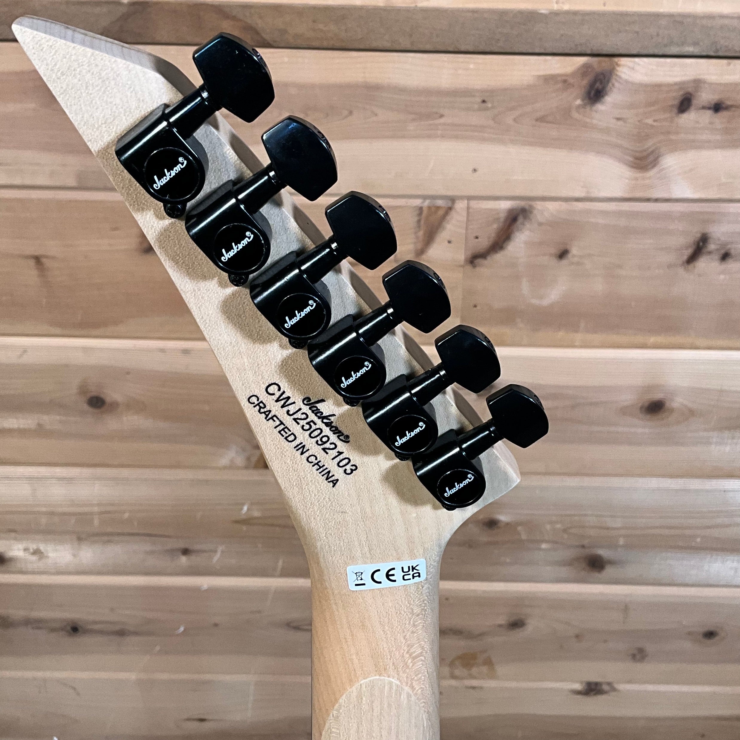 A pair of Jackson high-output humbucking pickups with ceramic magnets crank out clear tone with plenty of girth. The neck position delivers bright highs while the bridge adds plenty of crunchy distortion. Its versatile voice can be shaped with a three-way toggle switch and single volume and tone controls, while a string-through-body hardtail bridge with block saddles improves intonation and sustain.