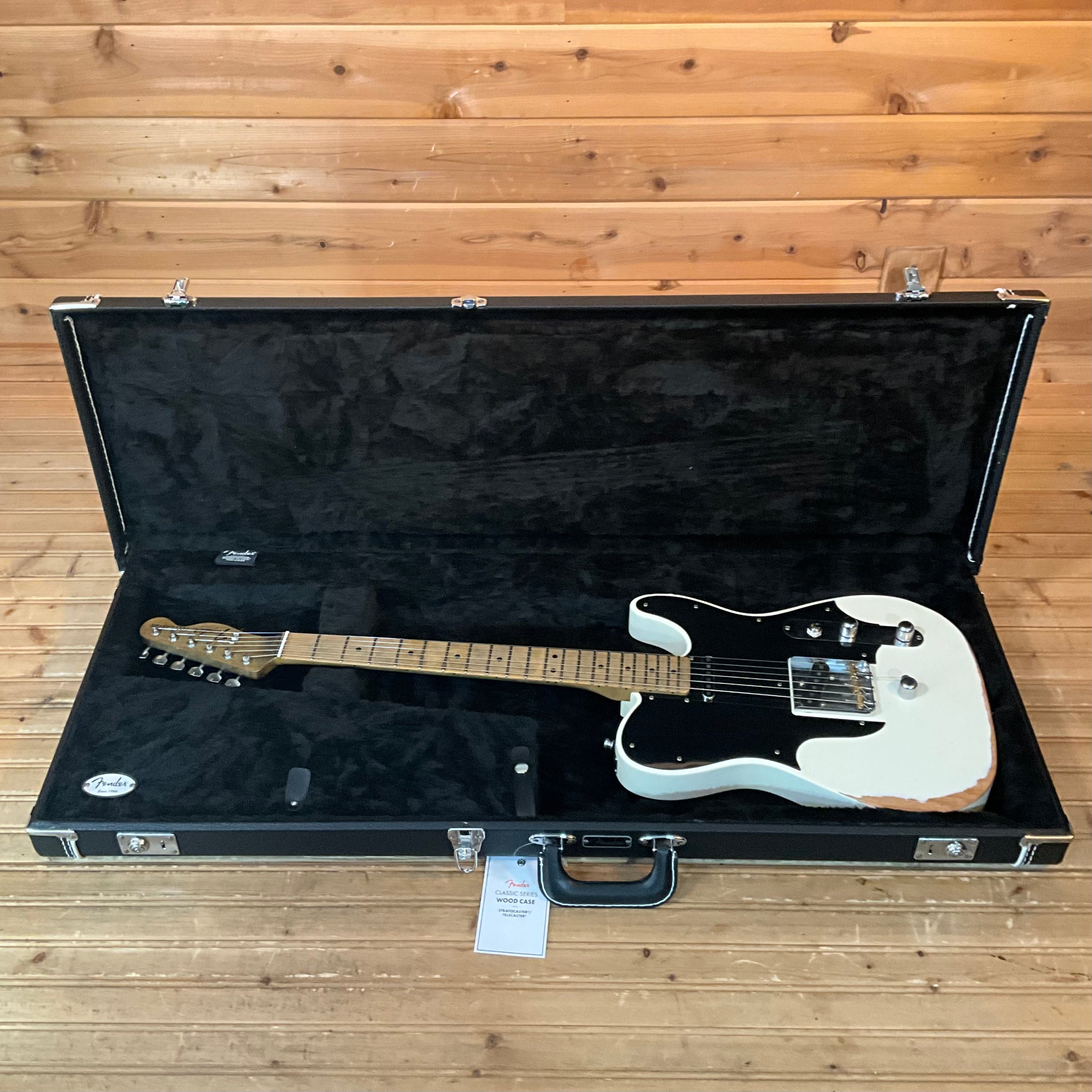 The Road Worn® Olympic White finish captures the authentic wear and character of a gigging musician's trusted instrument. With custom-voiced John Osborne Telecaster pickups, custom pickguard and 3 compensated brass barrel saddles, the John Osborne signature Telecaster delivers everything from shimmering clean tones to growling overdrive.