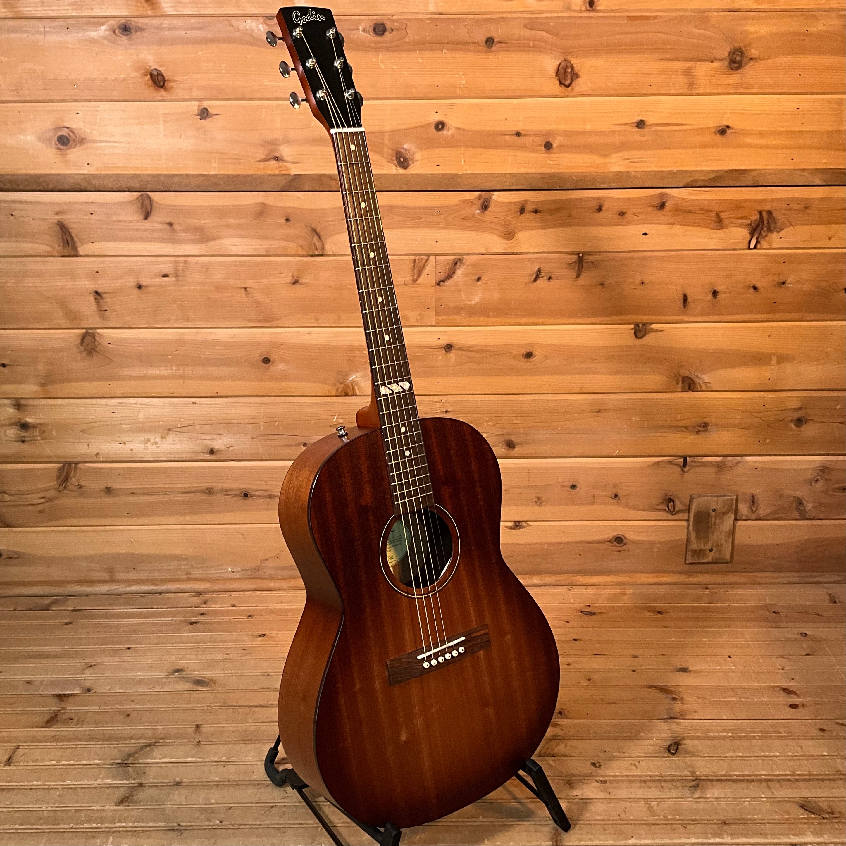 The new Metropolis Natural RN GT EQ reflects Godin’s high standard of acoustic guitar tone, design, and value. With a buttery neck feel, this guitar plays warm and loud, and will make you feel right at home from the first chord! The guitar features Mahogany Back & Sides and a select Solid Spruce Gloss Top. Other quality build and design components include the distinctive Metropolis pickguard with matching headstock plate, a mahogany neck with a Rosewood fretboard, a custom Metropolis inlay at the 12th fret, an ebony bridge, and features Presys VT electronics with a soundhole-mounted volume & tone. The Metropolis Natural RN GT EQ has classic dreadnought looks, yet a modern design which produces rich and defined tones, at a value that will have you strumming for joy! The Godin Acoustic Series—play it once, play it forever.