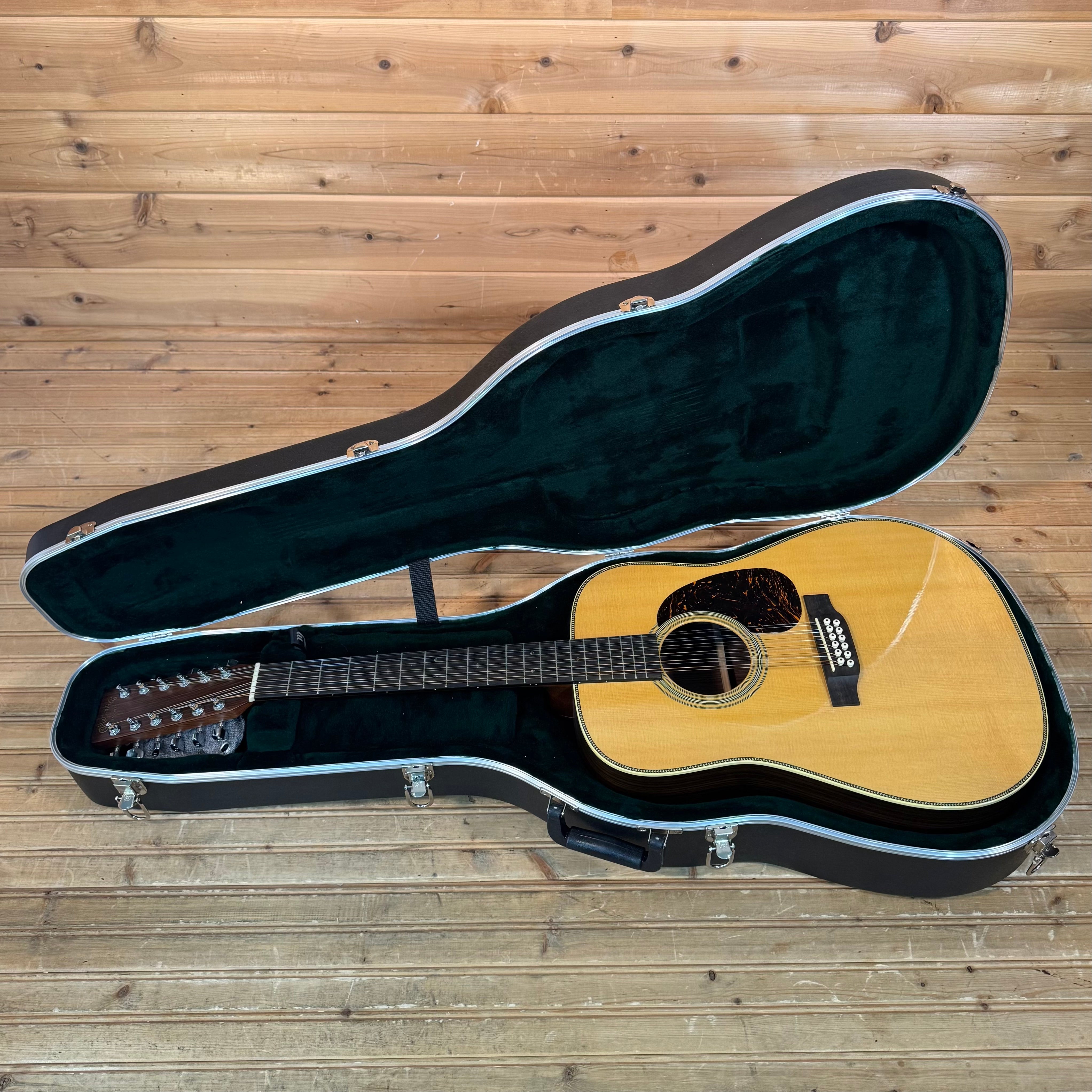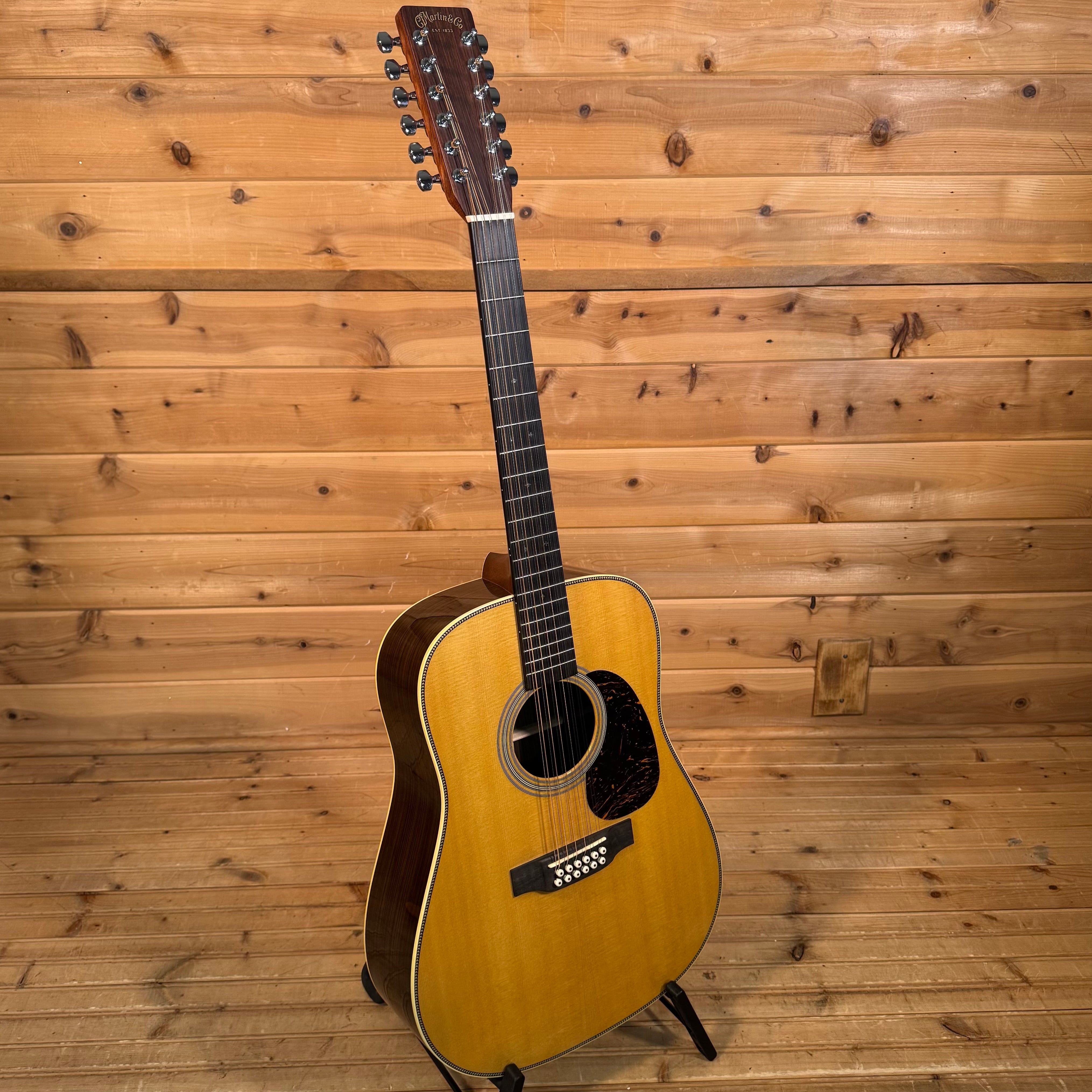 The Martin 00-28 is a trusted choice for players who value rich, resonant tone and effortless playability. Its smaller, comfortable Grand Concert body size delivers a soft yet expressive voice, with clear trebles complemented by warm bass, making it ideal for fingerstyle, intimate strumming, and everything in between. Handcrafted with a solid spruce top and solid East Indian rosewood back and sides, the 00-28 offers deep bass, rich overtones, and exceptional resonance, balanced beautifully for any playing style. The satin neck with a Golden Era (GE) Modified Low Oval profile, high-performance taper, and 24.9" scale length ensures unmatched playability. Elegant touches like bold herringbone top inlay, antique white binding, an ebony bridge with bone pins, and an ebony fingerboard with abalone diamond and square inlays complete its timeless design, making the 00-28 a guitar you can trust to unleash the artist within.