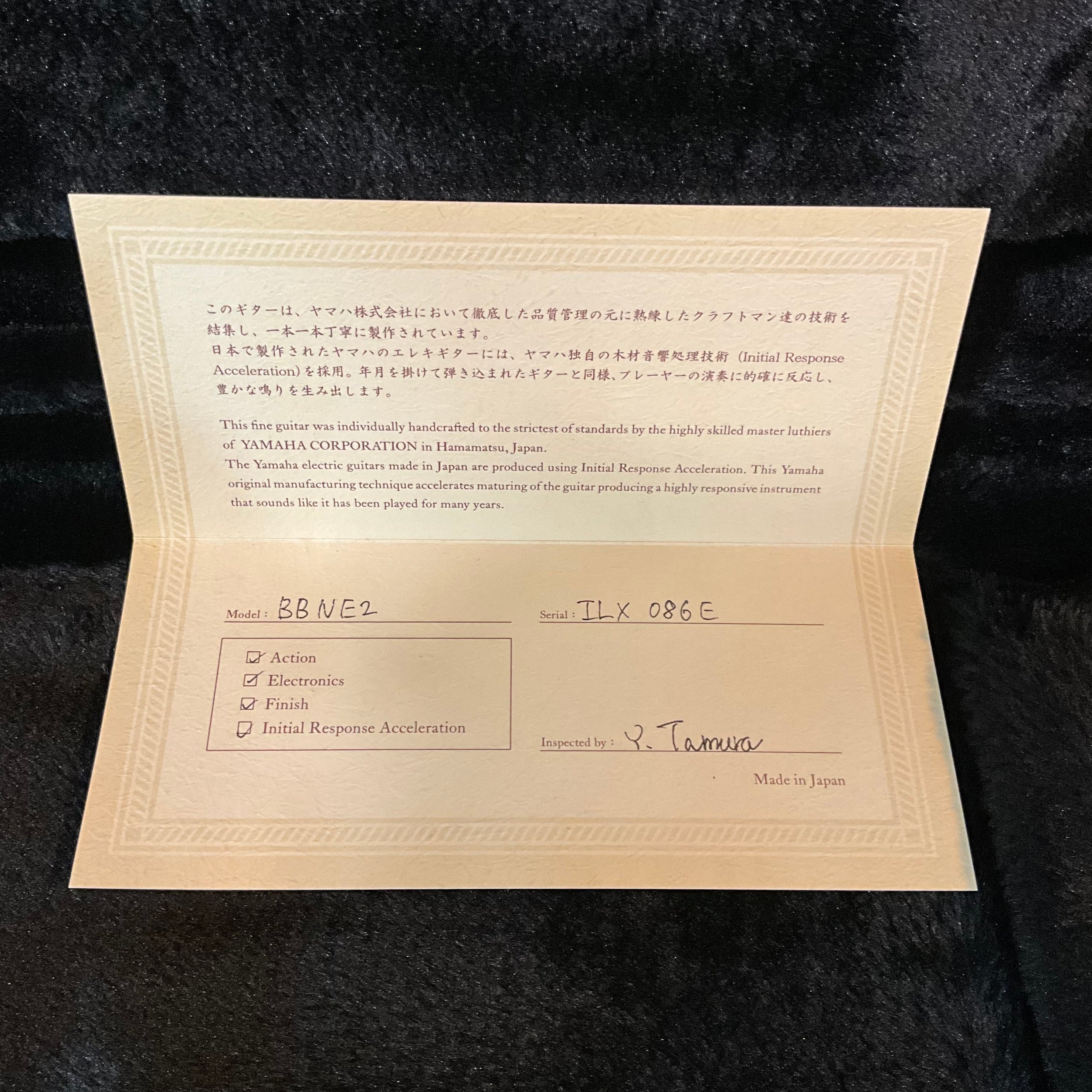 | Electronics | Neck Pickup | Yamaha Custom Stack Type / Alnico V |