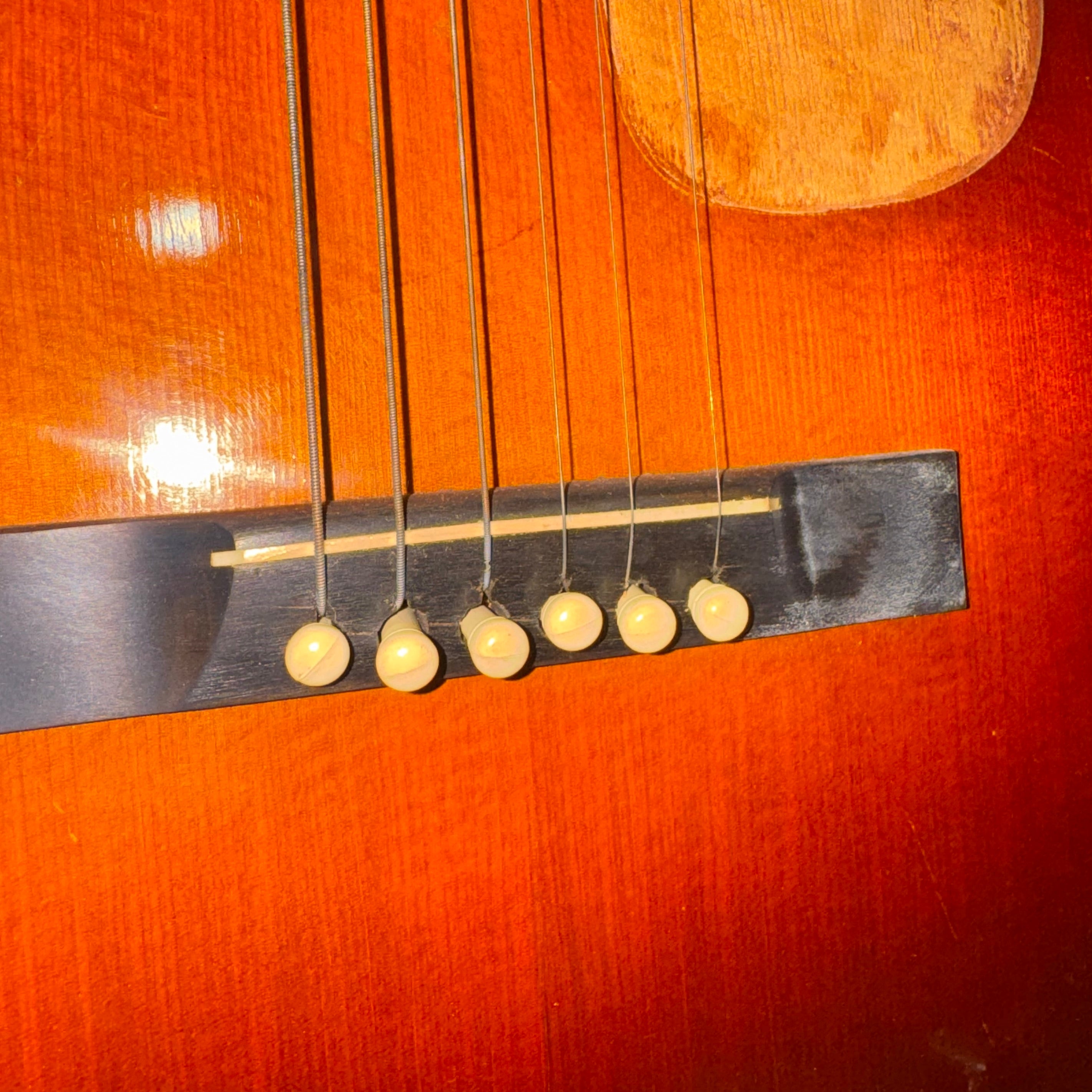 **This guitar is used and in good condition. Signs of wear and cosmetic damage can be found throughout the guitar including a cracked and lifted bridge (see attached pictures). The original pickguard comes with the guitar as well as the hardshell case. The price has been adjusted accordingly.